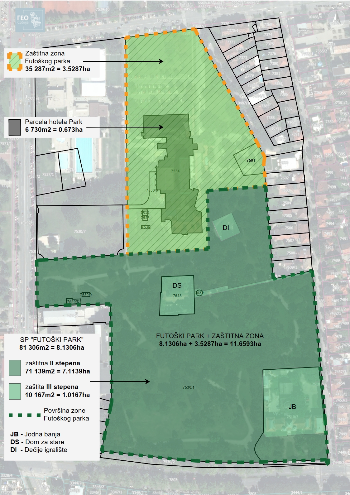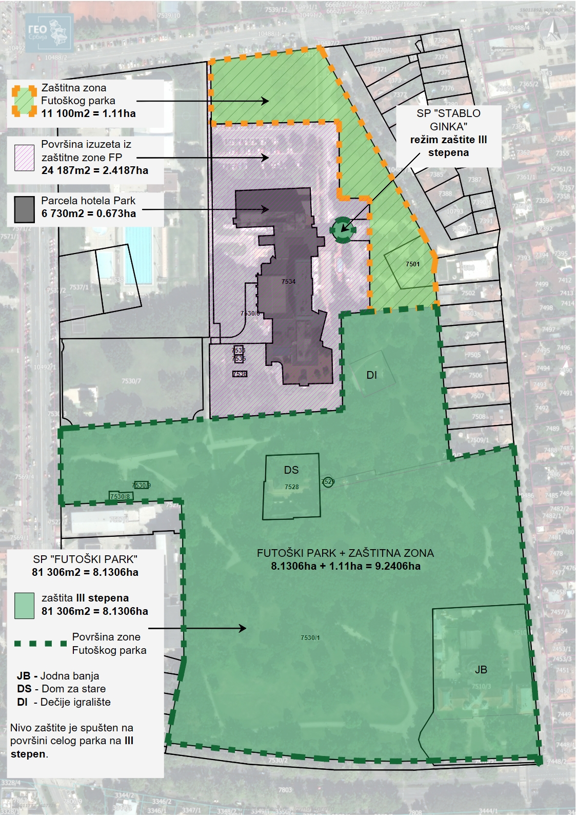 - СП Футошки парк је тада заузимао површину од 8,1306 хектара (парцела Јодне бање 7510/3 није била укључена)